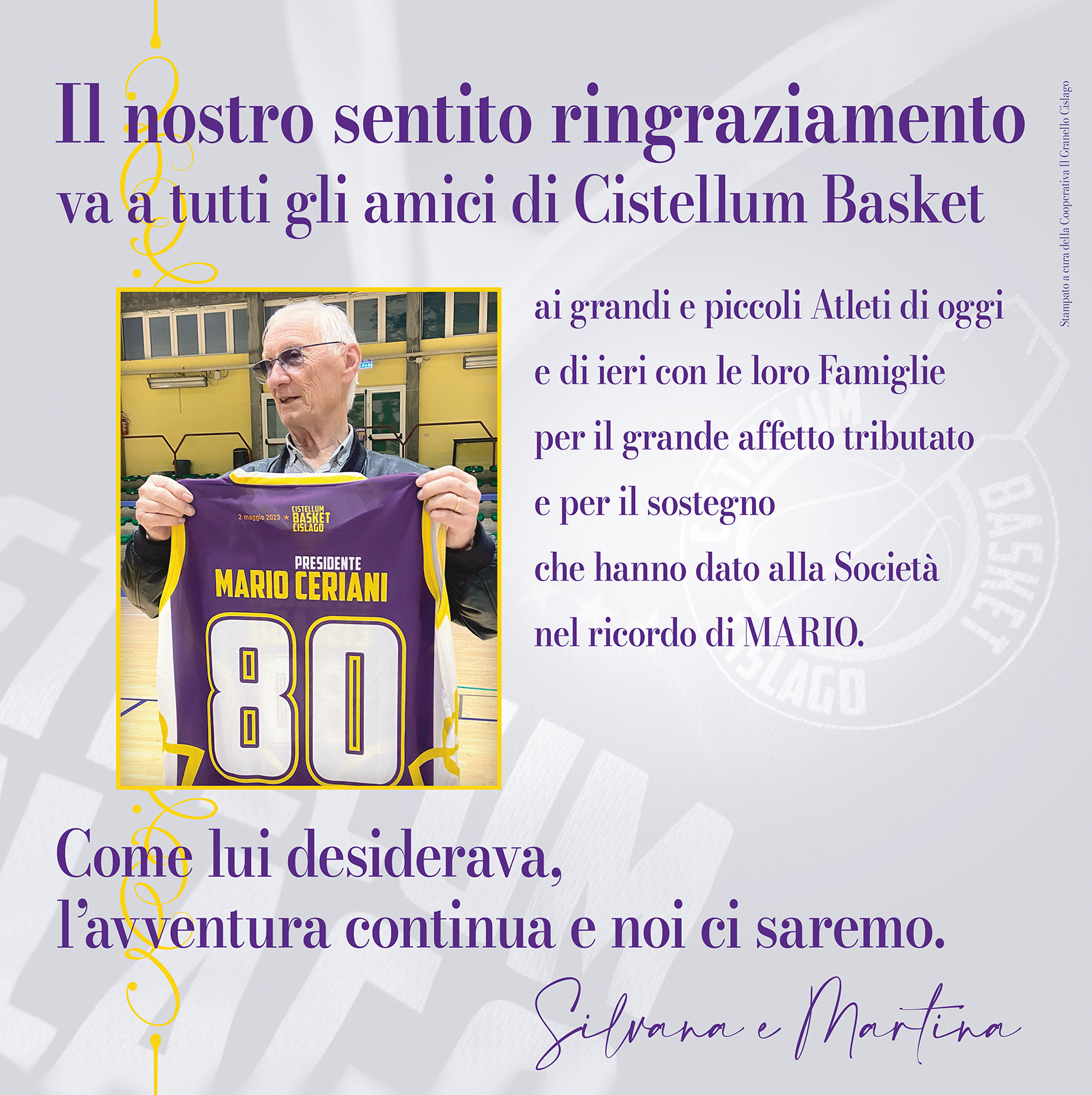 Cistellum Basket Cislago saluta il dirigente Mario Rapa: grazie